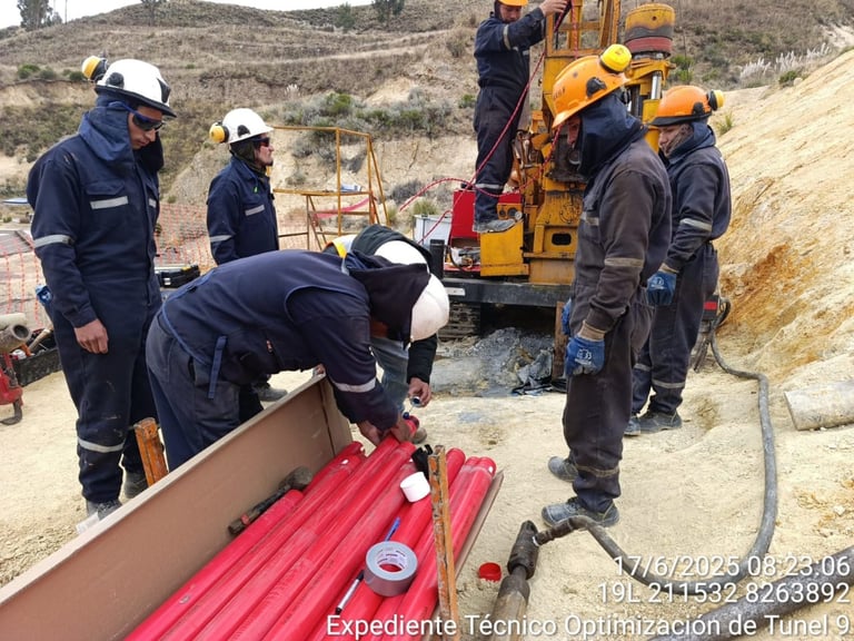 Instalación de piezómetro e inclinómetro para monitoreo geotécnico.