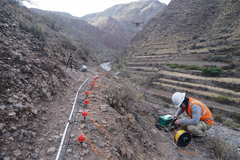 Realizamos estudios geofísicos para la exploración y caracterización del subsuelo, mediante métodos no invasivos que permiten determinar propiedades dinámicas y estructuras internas del terreno